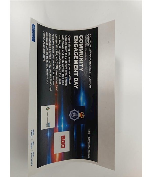 Clapham’s Safer Neighbourhood Teams would like to invite you to come down and join in with our community event taking place Saturday 25th October 2025 between 1200-1500 hours on the Common by Holy Trinity Church. (WHAT3WORDS - ///pine.pads.sits)