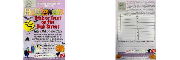16 High Street shops starting in Aldermans Hill from Lakeside Road down to The Triangle and along Green Lanes up towards Hedge Lane, will have 16 specially numbered Pumpkins - that will be visible in their shop windows. Find and list (on the leaflet you can get from many of the shops) these shops as you find the Pumpkins and in the order they appear. Winner will be announced at Tea's and C's on Green Lanes at 6:15pm.