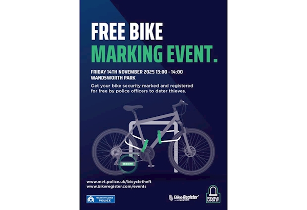 Bike Marking at Wandsworth Park : Friday 14th November 1:00pm to 2:00pm |