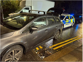 Arrest: Theft of vehicle, Handling Stolen Goods, Dangerous Driving and breach of Crown Court Bail A man was arrested following failing to stop for police whilst driving a Toyota Avensis which was on false plates. The vehicle eventually crashed near Ilford Lane and with the help of NPAS (police helicopter), the driver was located and arrested. The vehicle was identified as stolen two weeks earlier from the Stratford area. This person was charged for all offences.